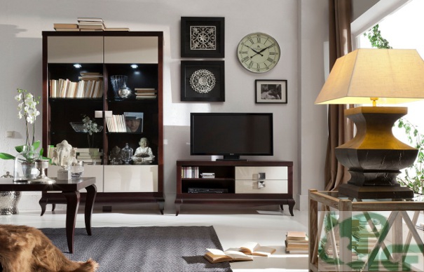 Тумбы ТВ, комоды, витрины, стеллажи, шкафы-гардеробные. Материал: шпон дуба/МДФ/ стекло.Цвета: венге/ серый глянецСроки поставки: от 2 недель до 1месяца Оригинальная гостиная в стиле модерн. Если вы устали от классики, но хотите стабильности. Узнайте обо всех модулях коллекции, написав нам по почтеE-mail: или на сайте фабрики:http://www.bydgoskiemeble.pl/ru/furniture-catalogue/programs/sevilla/?picture=5