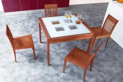 Стол обеденный, раскладной, каркас-массив дерева, закаленное стекло